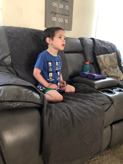 Through the months of May and June, all BCBA contact was being held via Zoom, which is helpful in some ways, but not if you are trying to provide one-on-one support for a highly anxious child, who has serious SIB (self-injury behaviors). Our BCBA (I will call her “J” for privacy reasons), finally was cleared to come out to the house last Friday, which was her first true interaction with Greyson. She informed Derek and I that our new RBT (I will call him “D” for privacy, too) would be starting services with Greyson effective (this past) Monday. This was a much needed sigh of relief, as I have been home alone with him for the past four, almost five months, with barely any behavioral support.