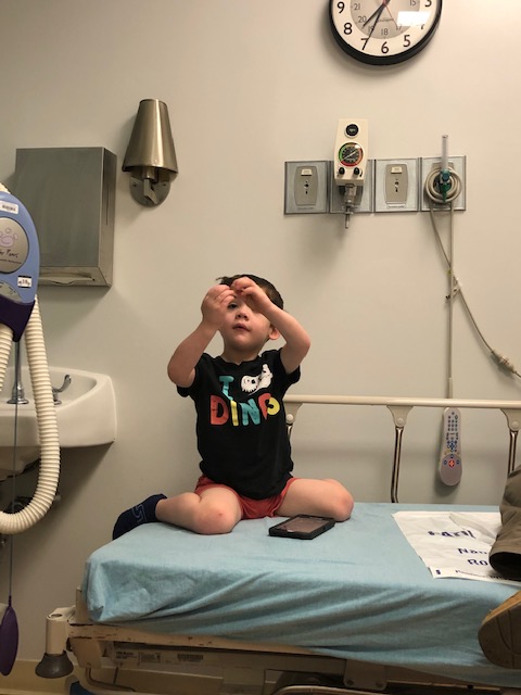 In December 2017, Greyson had bilateral ear tubes put in for frequent ear infections. The tubes appeared to have been working for a few months, but by late 2019, we noticed that he was having frequent infections again. Turns out, Greyson’s tubes never fell out, like they were supposed to, falling into his inner ear canal. Because the body sees the tubes as a “foreign” object, his body began to send white blood cells to his ears to get rid of the tubes, which just resulted in more and more infections, drainage, hearing loss, etc. With both ear drums perforated and his infections becoming frequent in early 2020, we knew by February that he was going to need surgery to correct it. Because of COVID-19, everything with Greyson’s procedure stood still. We were unable to do anything about his ears since Pennsylvania was on an elective surgery restriction. By early May, Greyson’s ears had become so troublesome, that I made an office appointment with his ENT. Dr. Da Costa, the surgeon, agreed that Greyson needed to be sedated for a bilateral tube removal and ear drum patch, to replace the damaged ear drums.