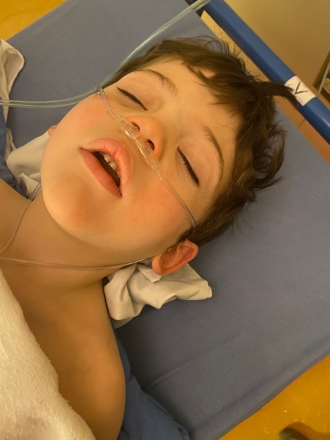 Once Greyson received the sedation medicine, he was out pretty quickly. We were assured that he would be okay and were able to kiss him goodbye before going into the lobby to wait. To pass the time, Derek and I decided that we were going to watch the latest episode of WandaVision on Disney Plus (if you haven’t watched this yet, you’re missing out!). We sat and watched the episode and once it was finished, we waited about another 25 minutes until being brought back to Greyson. Once we got into the room, Greyson was still asleep. He typically takes awhile to get up from sedation/anesthesia (very much like me), so I wasn’t expecting him to be up right away. This time, it did take a lot longer than any other time he has been under sedation, about 50 minutes total. I slowly removed the layers of warmed blankets from him, to help expedite the process to get him up and moving. Eventually, he did wake up and was very displeased he was in the hospital. He removed his supplemental oxygen tubes and was about to work on removing his IV, when I was able to get him to drink some juice, a requirement before discharge. Once he was able to drink a little and wake up completely, we got him dressed and were ready to go home.