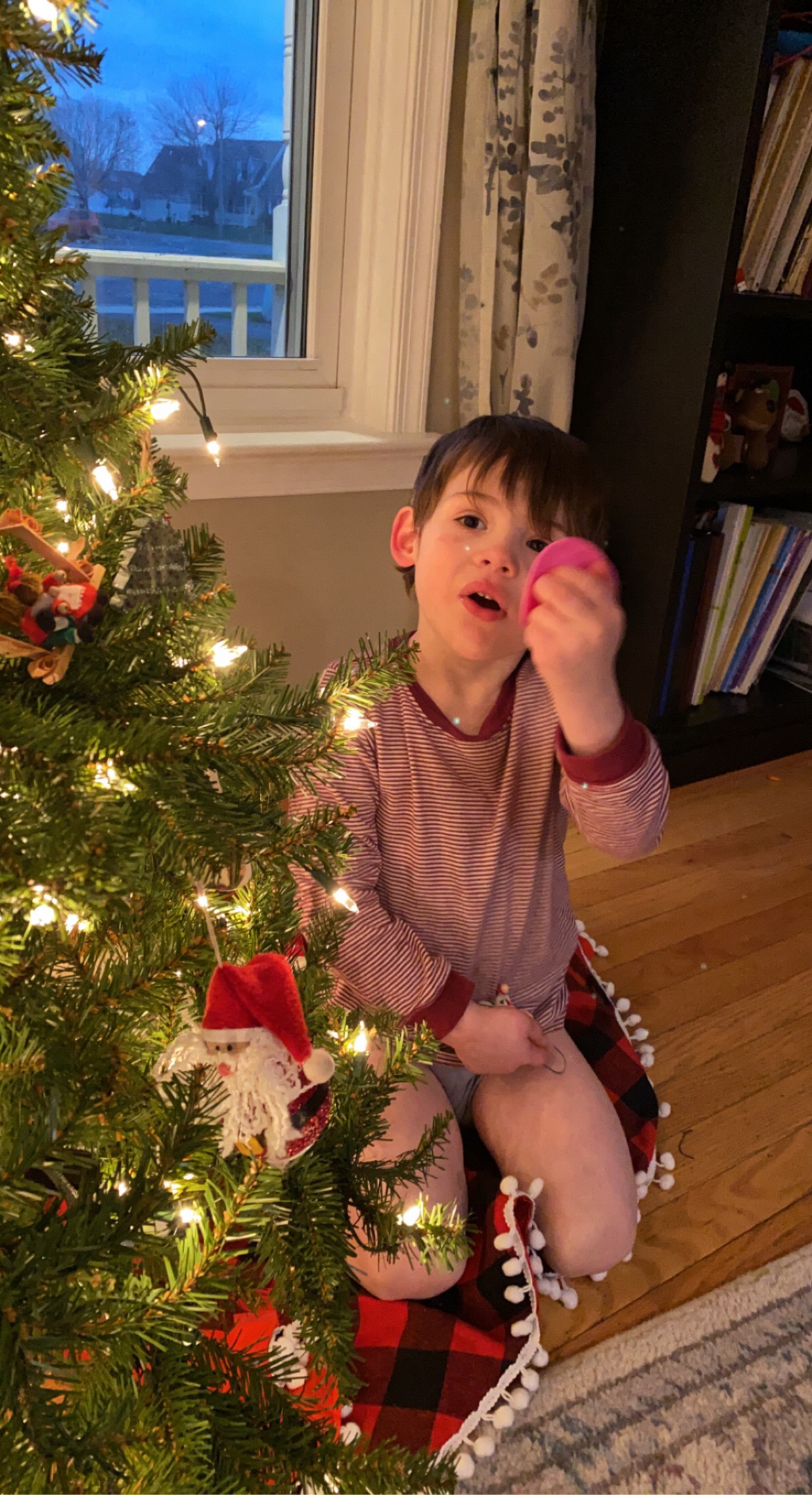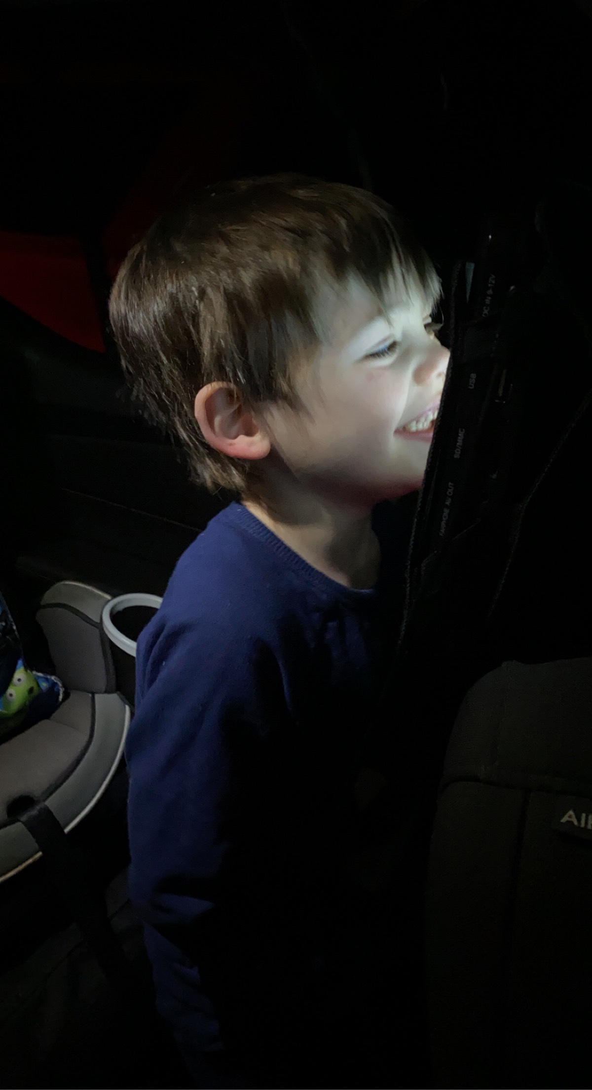The next morning, it was suggested that the boys stay another day/night at CHOP, but sensing Greyson’s increasing frustration, Derek requested that they be discharged to come home. At the end of the entire ordeal, Greyson had consistent sharp waves on his left side of the brain while asleep and while awake, which was a new founding. Previously before the increase in breakthrough seizures, Greyson was only having the sharp waves while he was asleep, which prompted his ESES diagnosis. Now that the spikes and epileptic waves are happening while he’s awake, it was suggested that we possibly add another medication to his daily cocktail of anti-seizure medications. Derek and Greyson finally got home around 1 pm on Saturday afternoon, just giving us enough time to let them shower, eat and rest before heading up to Hershey for a drive-thru light display. Despite being away for two days and being hooked up to a bunch of cords, Greyson was in such a great mood when we drove up to see the lights.