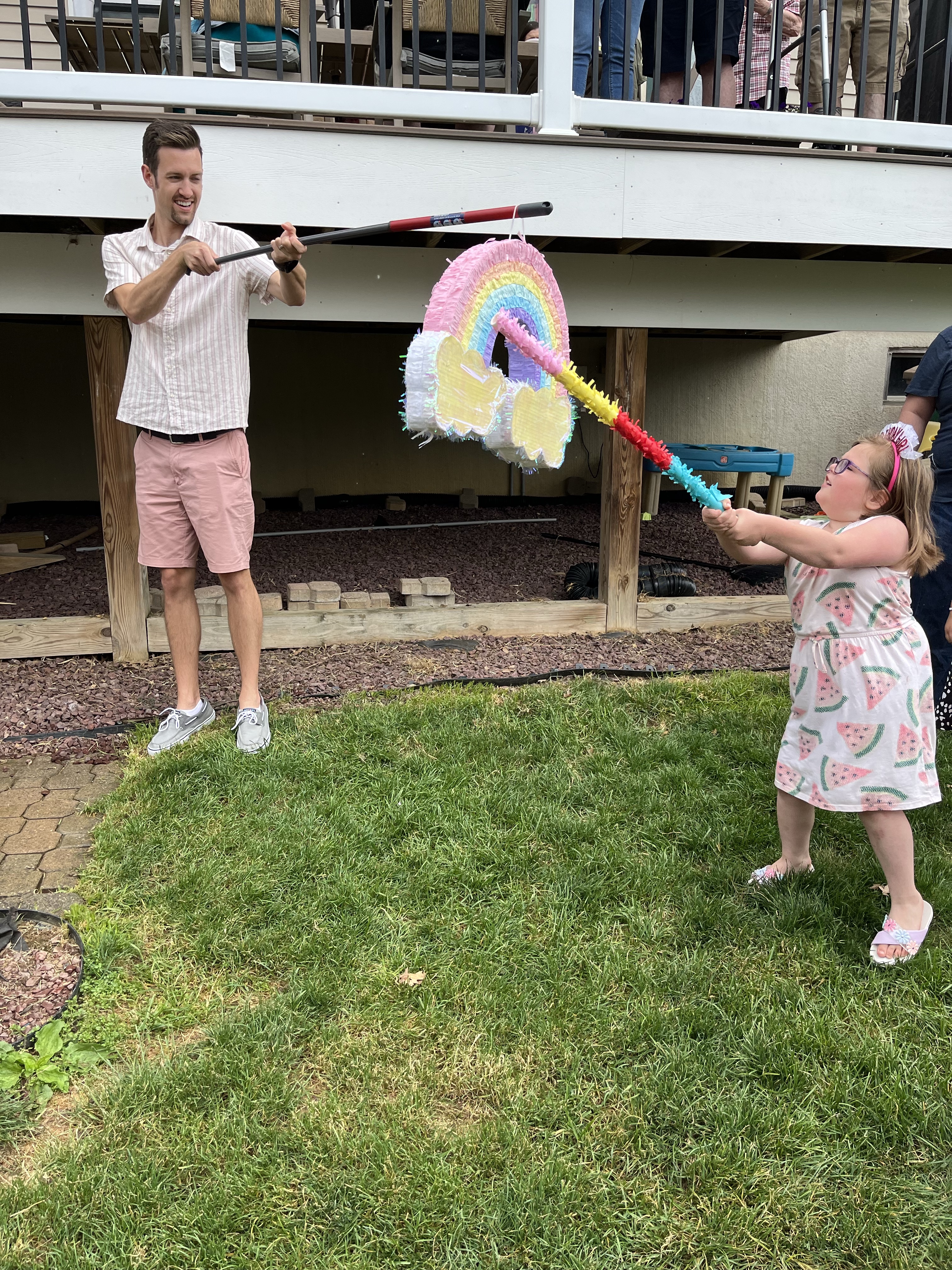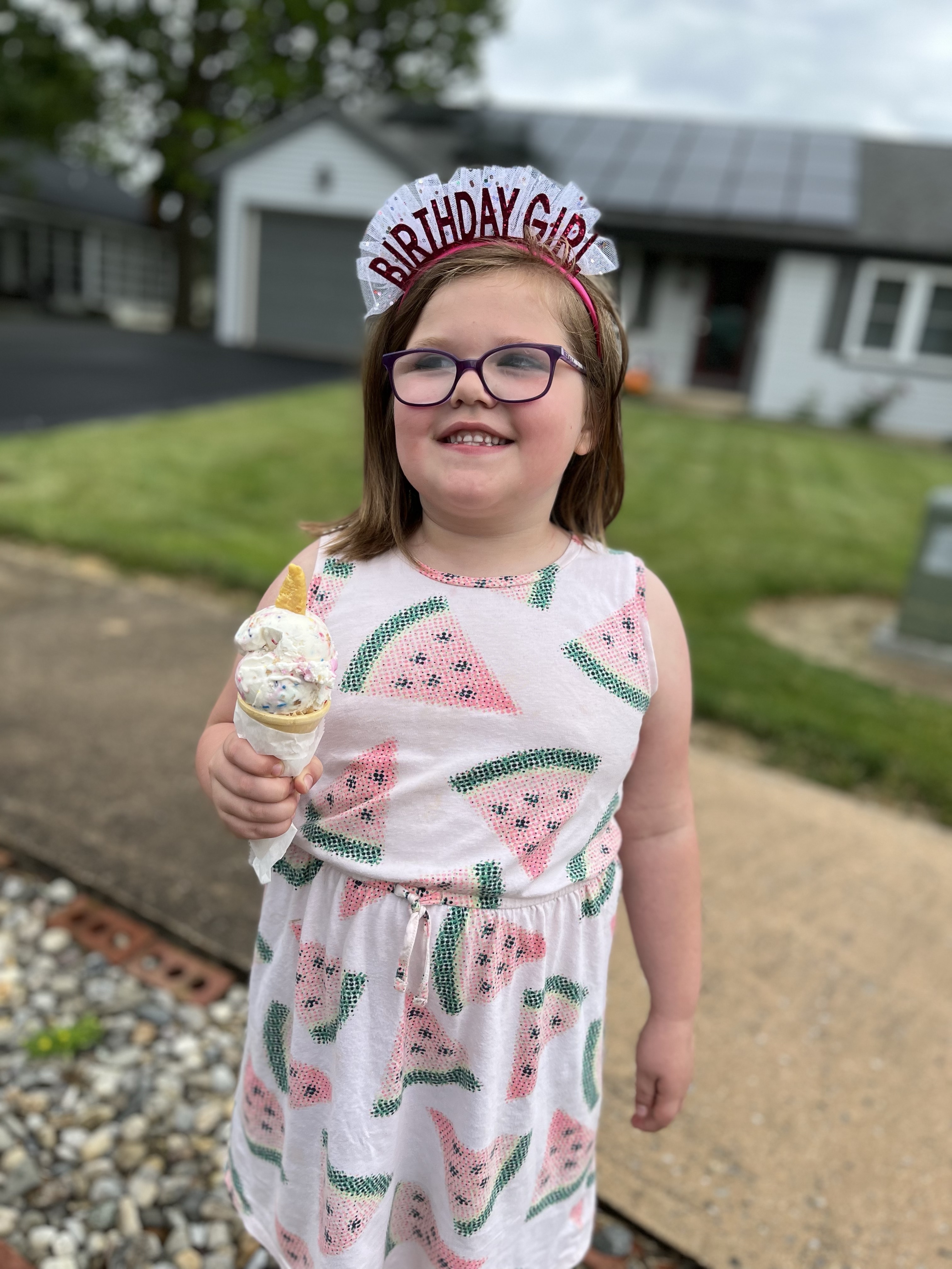 Most recently, we celebrated Roslynn’s 7th birthday with friends and family. Sadly, the rain forced many people inside, when we were planning that most of the party would happen outside, but it was a great party regardless. We had a local ice cream truck rented out for our guests to enjoy, rather than doing the traditional cake and ice cream. We did an ice cream themed party, which was a nice theme to kick off summer with. After some spills and a potentially dangerous pinata, the party was a huge success. The ice cream truck was a hit with many guests enjoying the surprise, and we even had some of the neighbors join in on the truck, basically to make up for the fact that we blocked off the entire culdesac with cars and a huge truck. All is forgiven with ice cream in my opinion. My mom would have been so impressed with how far Roslynn has come in a year. She would’ve also loved the rainbow sherbert that the truck offered. I hope that as Roslynn continues to celebrate more birthdays, she will continue with her fun, loving and gentle personality, and will continue to make all of her family, present and passed, proud.