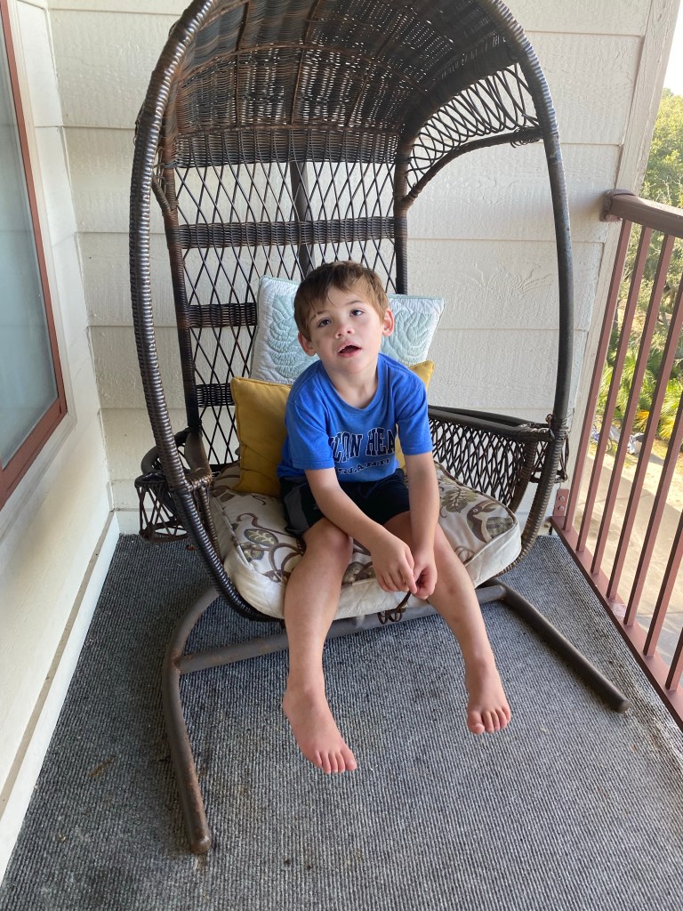 This week, we are in Hilton Head Island, for our semi-annual family vacation. We were here last in June 2019 (thanks COVID and Mom’s illness), and are making up for lots of lost relaxation time. So far, Greyson has really enjoyed sitting on the beach, jumping over waves and swimming in the pool. Our first full day down the the beach was yesterday and despite having sunscreen on, and reapplying, Roslynn and I both got pretty severely sunburned. We will most likely go into the plaza today to shop and walk around before we pick up Greyson’s birthday cake for this evening.