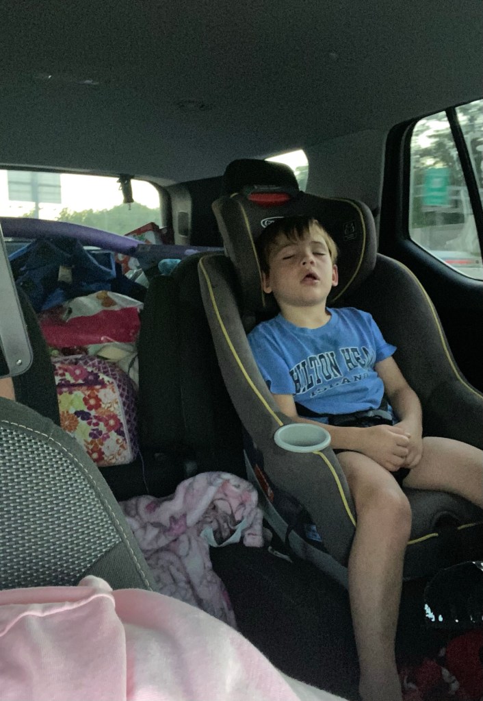 Up until the night before we left for our trip, I was not excited. I am always so excited to go to the beach, as it is the only place I go where I can feel completely at ease with the world. This was a foreign feeling to me during this trip. Even driving down I-95, I had to fight off the sadness and lack of joy to be going to the beach. In my 32 years of existence, I have NEVER EVER felt sad leaving my house, to venture out on a trip to Hilton Head. We left fairly early in the morning (around 2:30 am), in hopes that the kids would sleep until breakfast. Yeah right! Turns out, the kids were so thrown off course, they stayed up until 11 am. I am literally blind when trying to drive in the dark, so Derek ended up driving until the sun came up, about 5 or 6 hours through Virginia. I knew he was tired, so we switched off. Up until this point, I was feeling so run down and exhausted, I had a hard time keeping my eyes open and focused. After about an hour or so of me complaining about how tired I was, Derek agreed to take over driving again, much to his dismay. I slept immediately after, until we were close to Hilton Head. I couldn’t stay awake. The only other time I have ever felt so drained of energy, was when I had mono back in college.