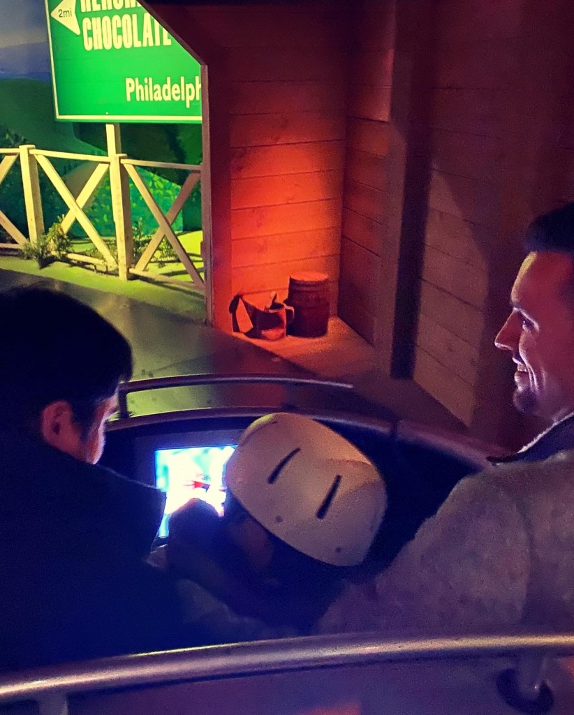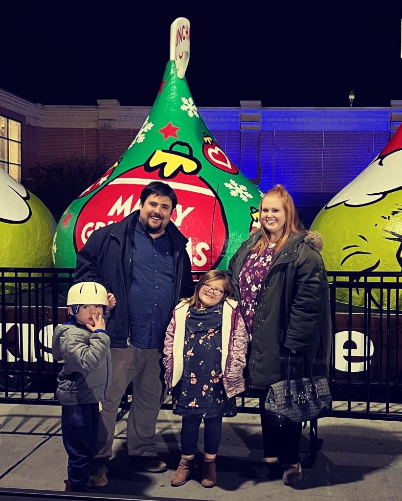 The Hershey “Sweet Lights” is a drive-thru style light show, which syncs up with your car radio. The light display and entire show is several miles long, only a 5 minute drive from Hershey Park. We have done this particular light show several times, which Greyson has always enjoyed. After the lights, I was a bit weary about taking Greyson into chocolate world, afraid that he would be loud and possibly have a meltdown in the large crowds, etc. We had four adults with us, so we decided to bite the bullet and take our chances with the ride. Greyson sat in the front of the 5- person car with Derek and my brother-in-law, and my sister, Roslynn and I sat in the back. I’m not sure if it was the fact that Greyson was sandwiched in between two men, or if he was just confused as to what was going on, but he did a GREAT job! At the end of the ride, we had our photo taken and the kids received a small chocolate bar for going on the “tour” of the factory. Upon leaving the ride, Greyson was very upset that we had to get off of the ride and began to fuss and throw himself down onto the floor. After a few minutes, we decided that it would be best for Greyson and Derek to go out to the car and Roslynn and I stood in line to pay for the chocolate that the kids picked out. Roslynn picked her typical- ice breakers chewy mints and Greyson chose white chocolate peppermint bark bells (the Christmas version of a chocolate bell-shaped candy). He was so excited about these and hasn’t stopped loving on them since!