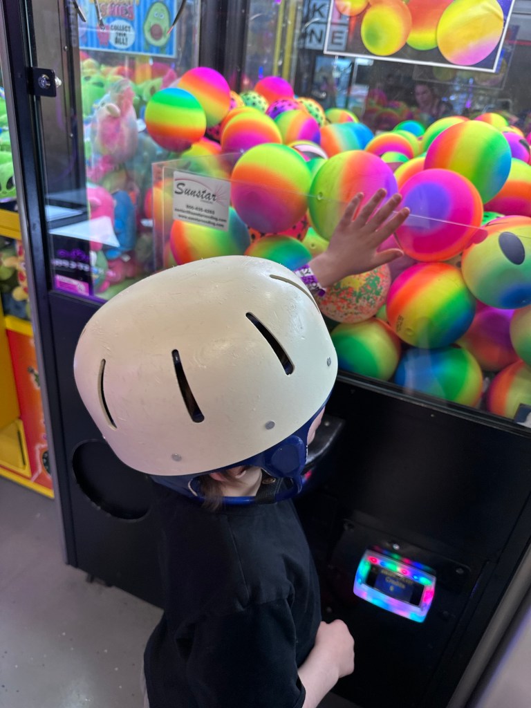 Our 2023-2024 resolutions of taking him out more is continuing to progress as well. Two weeks ago, he did another outing to our local grocery store. He was able to help push the cart and even has begun to push the cart to items that HE likes and picks those items off of the shelves and puts them in the cart. Derek is a sucker because as soon as Greyson started putting candy in the cart, Derek caved and got him some odd stuff that I didn’t even know existed. We also went to my nephew’s birthday party in February, and Greyson was able to stay (almost) the entire time! We only had to leave because he had a seizure during the last 20 minutes of the party and we needed to bring him home to rest. He had a BLAST at the party!! It was held at a gym, and he had so much fun running around, playing basketball, throwing balls and playing with my Dad’s cane. He did so great and had a wonderful time.