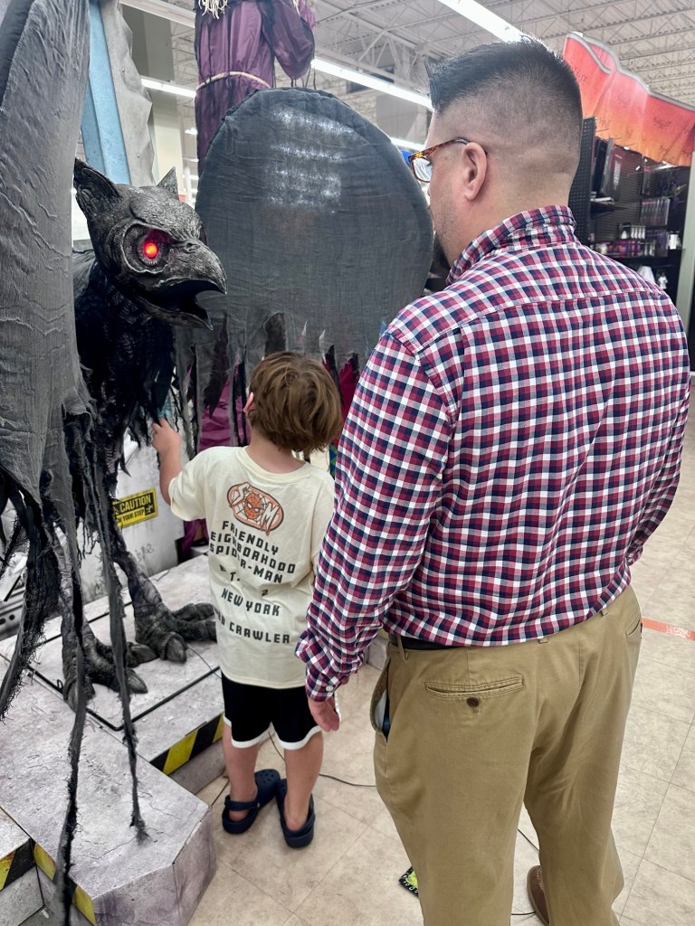 It’s finally time for spooky season….AKA my favorite time of the year! I love when the mornings are crisp and the afternoons are warmer, only to end the evening with the fall chill in the air. Fall also brings colorful leaves, steamed apple cider and the best thing EVER invented- the pumpkin cream cheese muffin from Starbucks. NOMMMMMMM. But in all honesty, fall is great for a bunch of reasons other than the ones listed above- school is back in session and Greyson picks out his own Halloween costume from his most favorite store ever, Spirit Halloween.