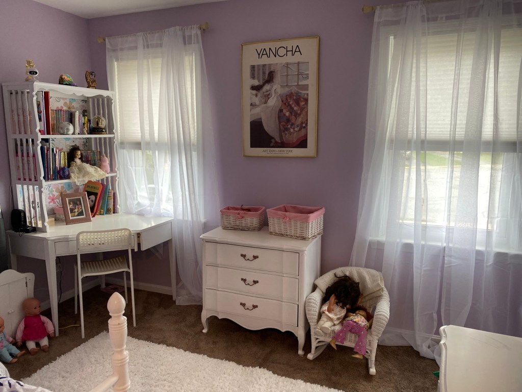 Since turning 10 in May, Roslynn has turned into our little pre-teen “granny”. She enjoys crocheting and knitting and prefers to be secluded in her bedroom, watching something or listening to music. She is really into some musicals right now and is anxiously awaiting Wicked (part 2) to come out in November, and is ecstatic to be Glinda in October for Halloween, playing opposite of my niece Lexi, who will be Elphaba. Shortly after her 10th birthday, Roz asked for a “big girl” room. She was over the purple walls and unicorn decor, and wanted a pink pastel/floral themed bedroom with a grown up loft bed. She was convinced that having a loft bed would give her more room to be “organized” and would help her keep her room clean. I will admit that her bedroom makeover has kept her room more clean than it has been in a lonnnnnng time….so maybe something is kind of working!